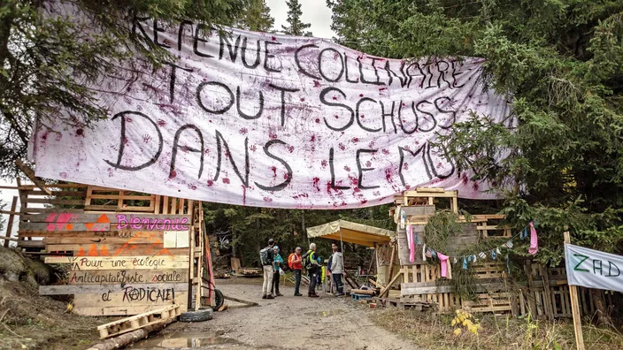 Activists occupied forests in La Clusaz to block a reservoir project. Source: Geoffrey Bire / Hans Lucas via AFP